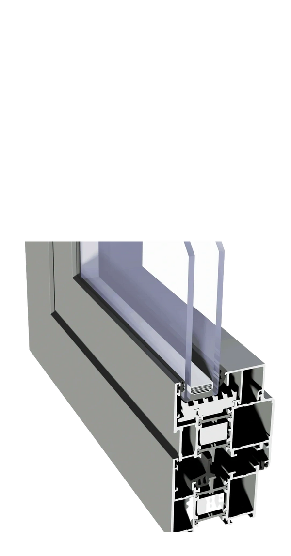 Die Verbesserung des Wärmedämmwertes wurde durch den Einsatz spezieller Wärmedämmeinlagen erzielt, die zwischen den Isolierstegen sowie um die Scheiben herum eingebaut werden. Dadurch erzielen wir eine Verbesserung des Wärmedämmwertes des Profilquerschnittes um 0,2 – 0,5 W/m K.